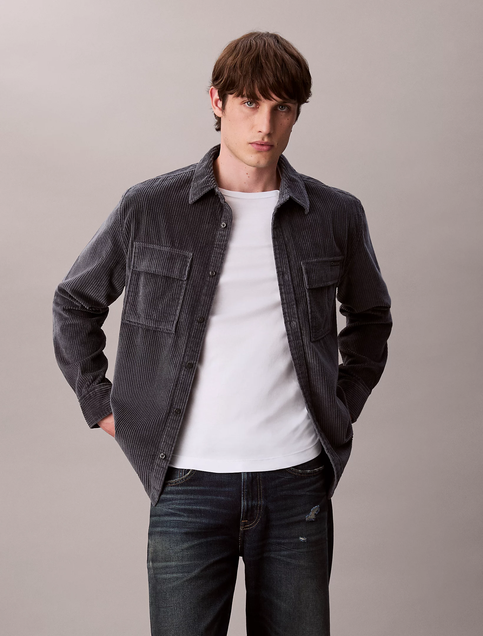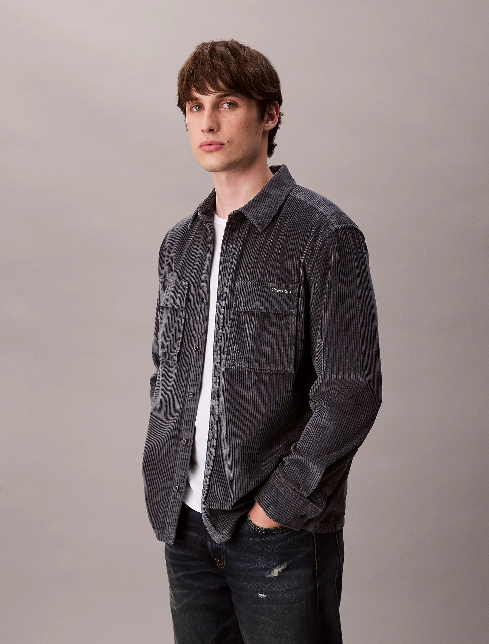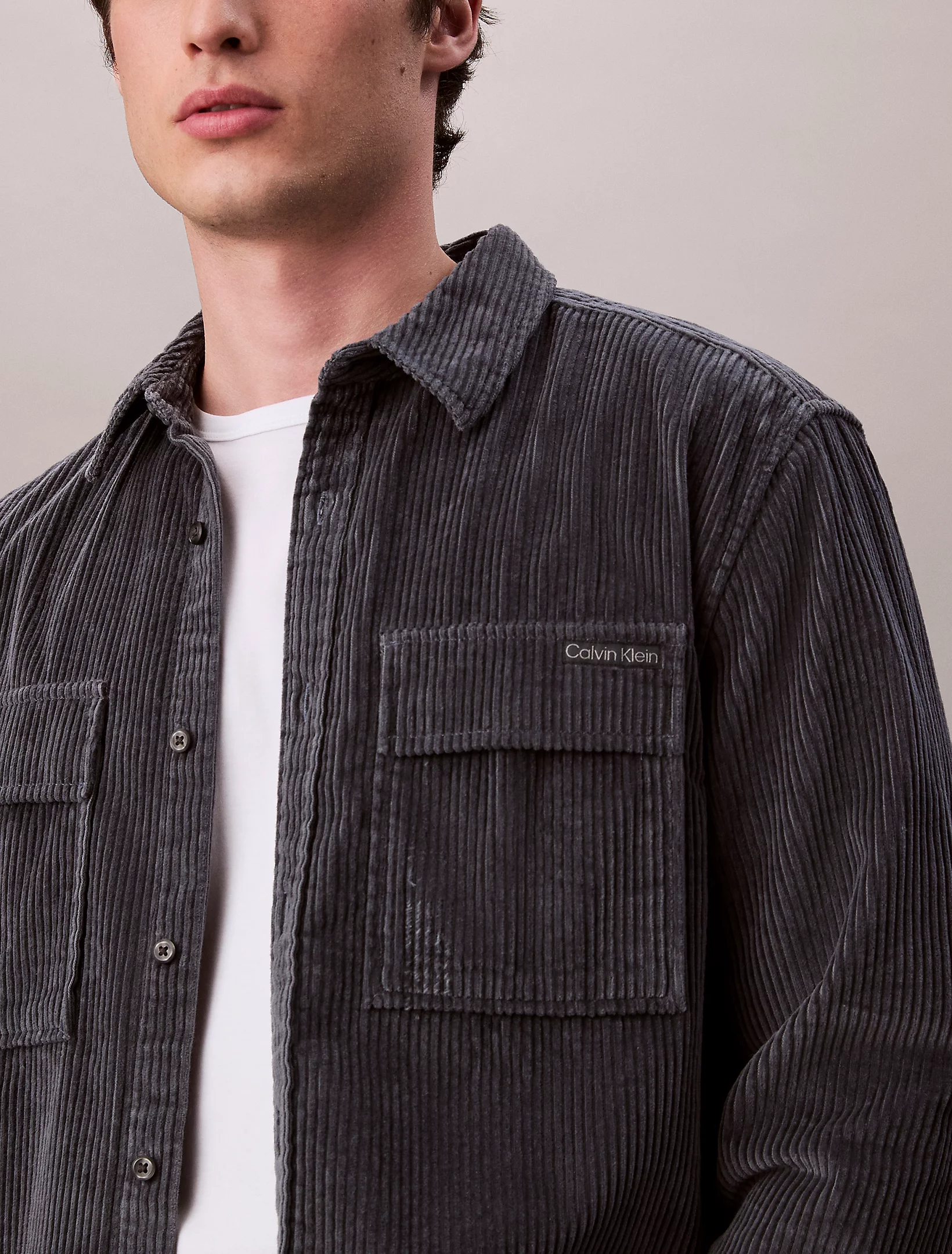 Calvin klein Corduroy Relaxed Overshirt r ett statement i sig. Den bredspåriga manchestern ger ett tydligt uttryck, medan den avslappnade siluetten gör den lätt att styla lager på lager. En street-inspirerad favorit som funkar från höst till vår – med den där subtila Calvin-attityden.