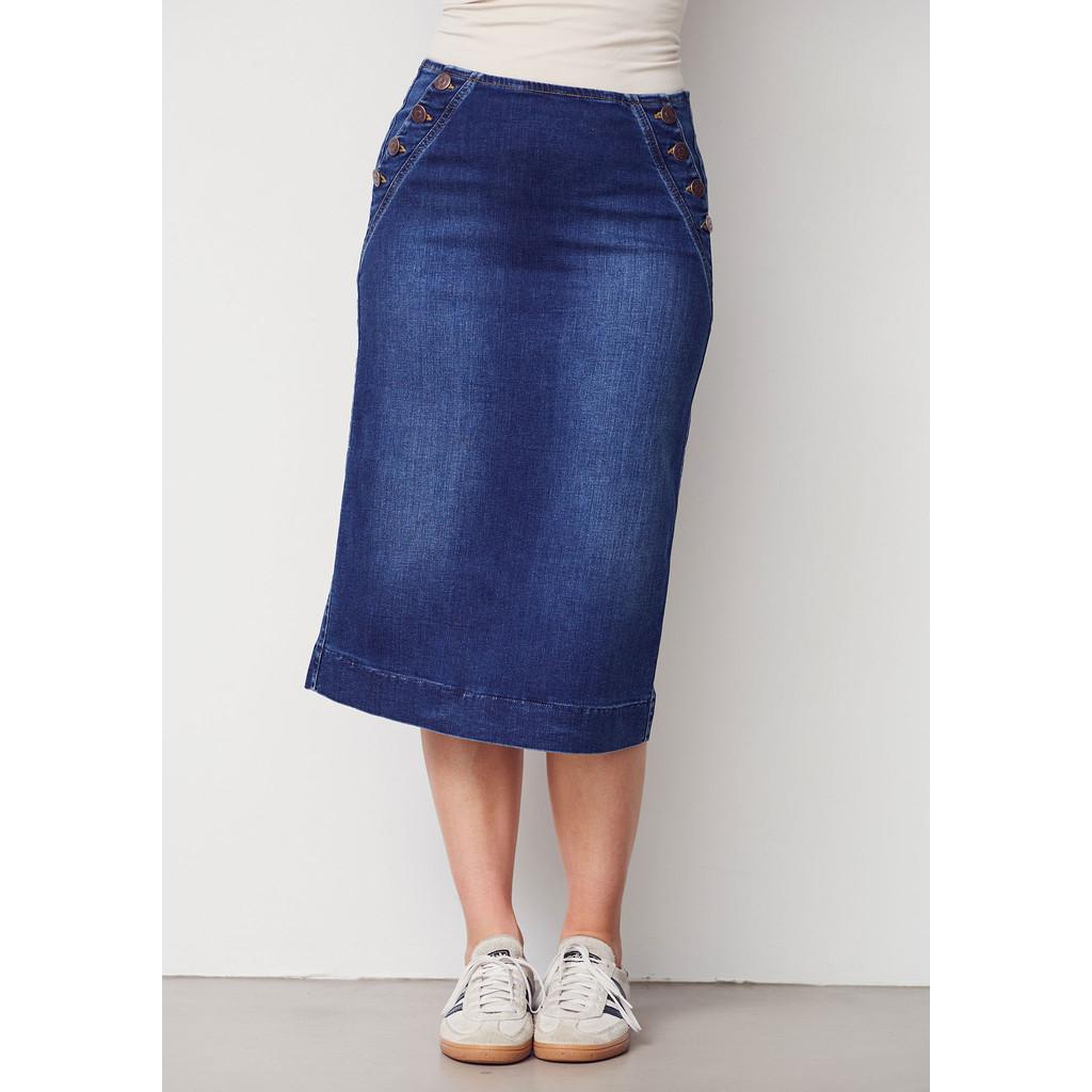 Isay Como Highwaist Skirt är den perfekta vardagskjolen som kombinerar funktionalitet och stil till perfektion. Denna jeanskjol har hög midja och en praktisk slits baktill som gör den lätt att röra sig i. Det unika med kjolen är de tre stora knapparna som ger en fräsch touch till den klassiska designen. Tillverkad i en hållbar bomullsblandning med stretch, garanterar den komfort hela dagen. Como Highwaist Skirt är lätt att styla med det mesta i din garderob, från en snygg skjorta till en avslappnad stickad tröja, och passar perfekt för både jobb och fritid.