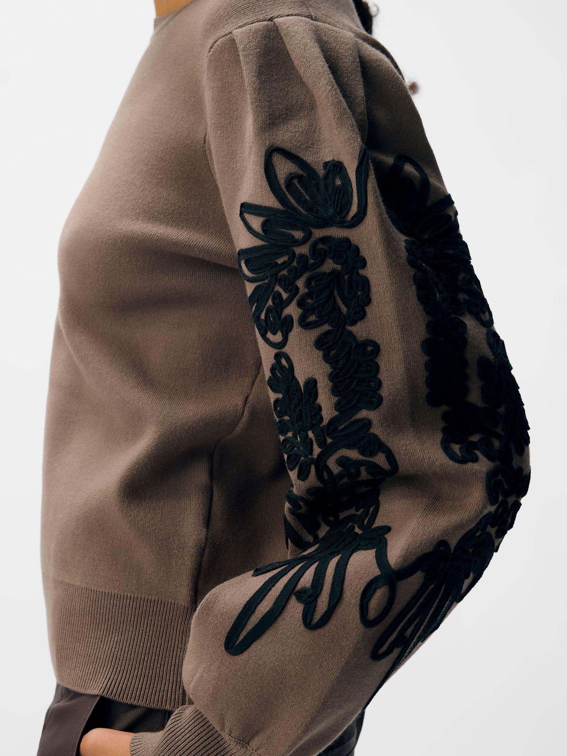 – Långa ballongärmar med broderidetalj